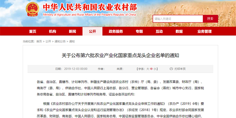 12月3日,农业农村部、国家发展改革委、财政部、商务部、中国人民银行、国家税务总局、中国证券监督管理委员会、中华全国供销合作总社联合印发通知,公布第六批 299 家农业产业化国家重点龙头企业名单,龙江开云官方端网站登录入口-开云online(中国)公司榜上有名。